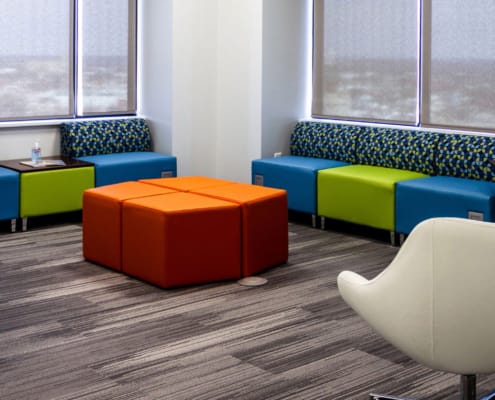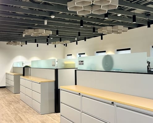 This project started as a completely blank slate. We worked with Expressway’s recruiting and retention manager and the contractors to bring their ideas to fruition. Our involvement early on in the construction process enabled us to determine the best possible furniture solution and have the walls built to accommodate it. In the end we provided furniture for six different departments with varying needs.